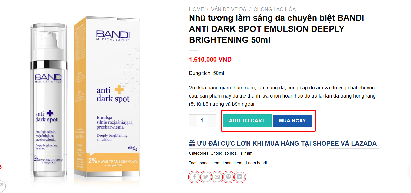 Nhấn nút “Thêm vào giỏ hàng” hoặc “Mua ngay”